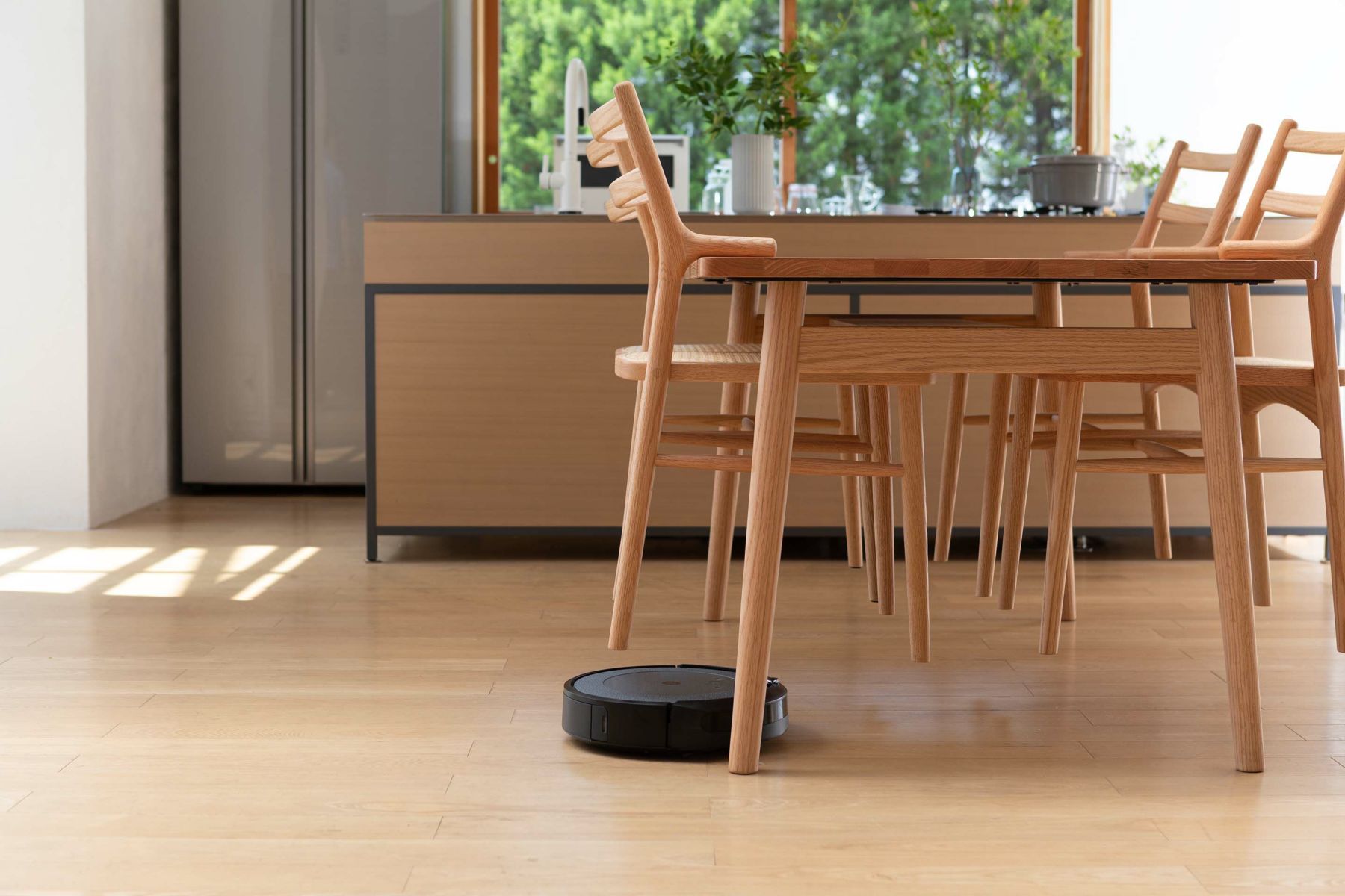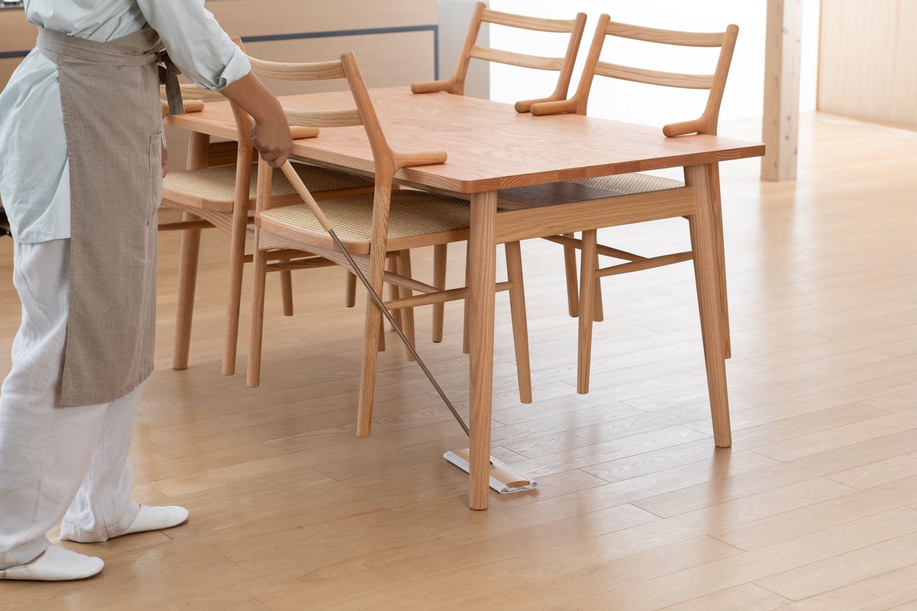 アームをテーブルに引っ掛けて本体を浮かせることで、床との隙間(約15cm)を作ることができます。床掃除の際に邪魔にならず、ロボット掃除機をお使いの方にも便利です。軽量化を実現した本体は、誰でも楽に持ち上げることができます。